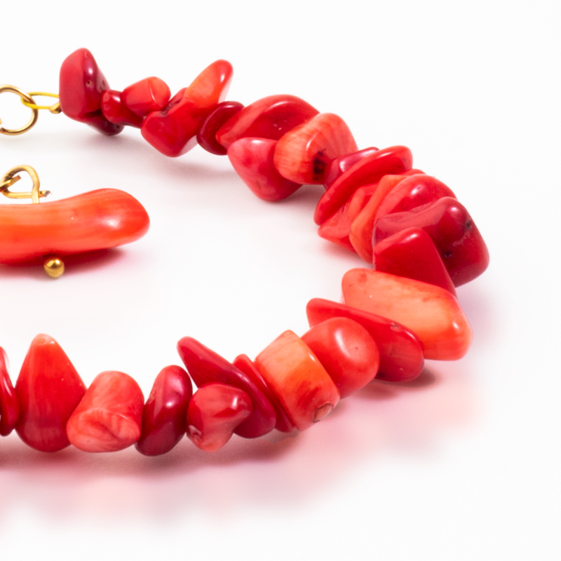 اگر دنبال اکسسوری گرم و جسور هستی، دستبند چیپسی مرجان انتخابی ساده و فوق‌العاده چشم‌گیره. طیف قرمز–صورتی مرجان کنار استایل‌های روزمره می‌نشیند و حس انرژی و جسارت می‌دهد.